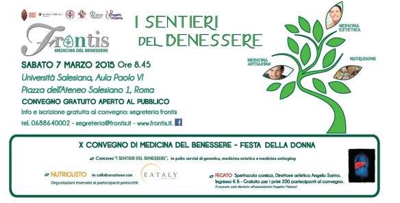 partire dalle ore 9, presso il Pontificio Ateneo Salesiano in III Municipio, si svolgerà il Convegno “I Sentieri del Benessere”, con interventi di esperti qualificati nel settore della medicina e della salute.