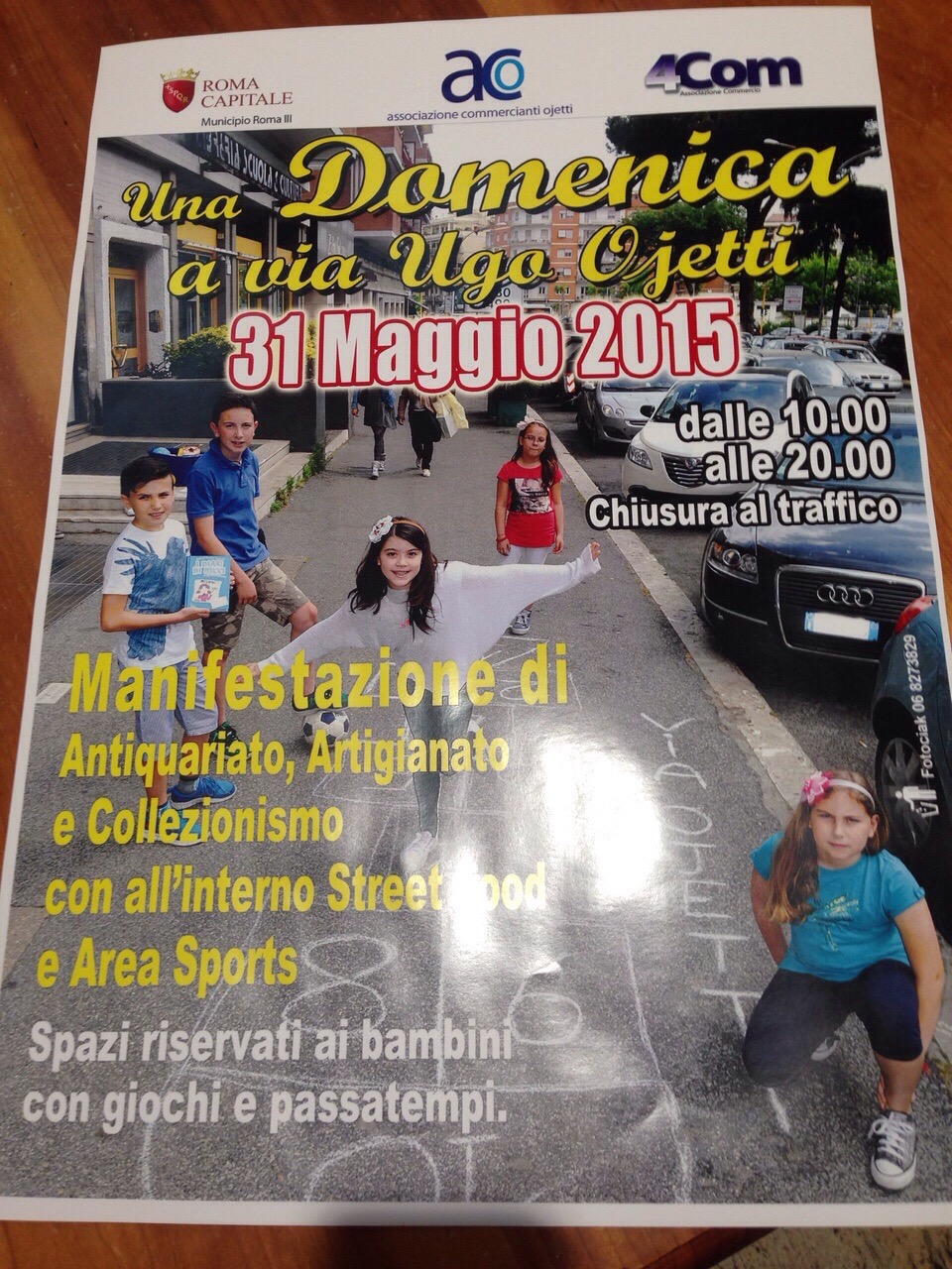 Domenica 31 maggio dalle 10 alle 20 è previsto il consueto appuntamento di chiusura di via Ojetti a Talenti al traffico per l’esposizione di stand di artigianato ed enogastronomia con intrattenimento per grandi e piccoli. La manifestazione è organizzata dall’associazione commercianti di via Ojetti col patrocinio del III Municipio.