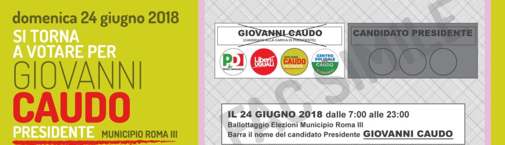 DOMENICA 24 GIUGNO: INVITO AL VOTO PER GIOVANNI CAUDO PRESIDENTE DEL III MUNICIPIO