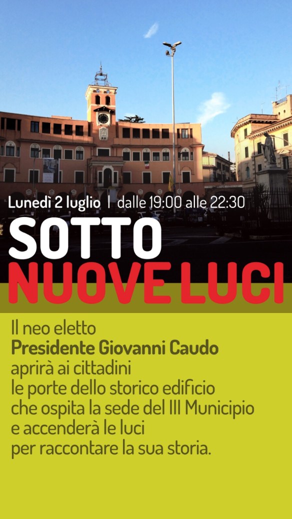 Questa sera, lunedì 2 luglio a partire dalle 19, il neo eletto presidente del III Municipio Giovanni Caudo aprirà lo storico edificio di Piazza Sempione, sede istituzionale, ai cittadini.