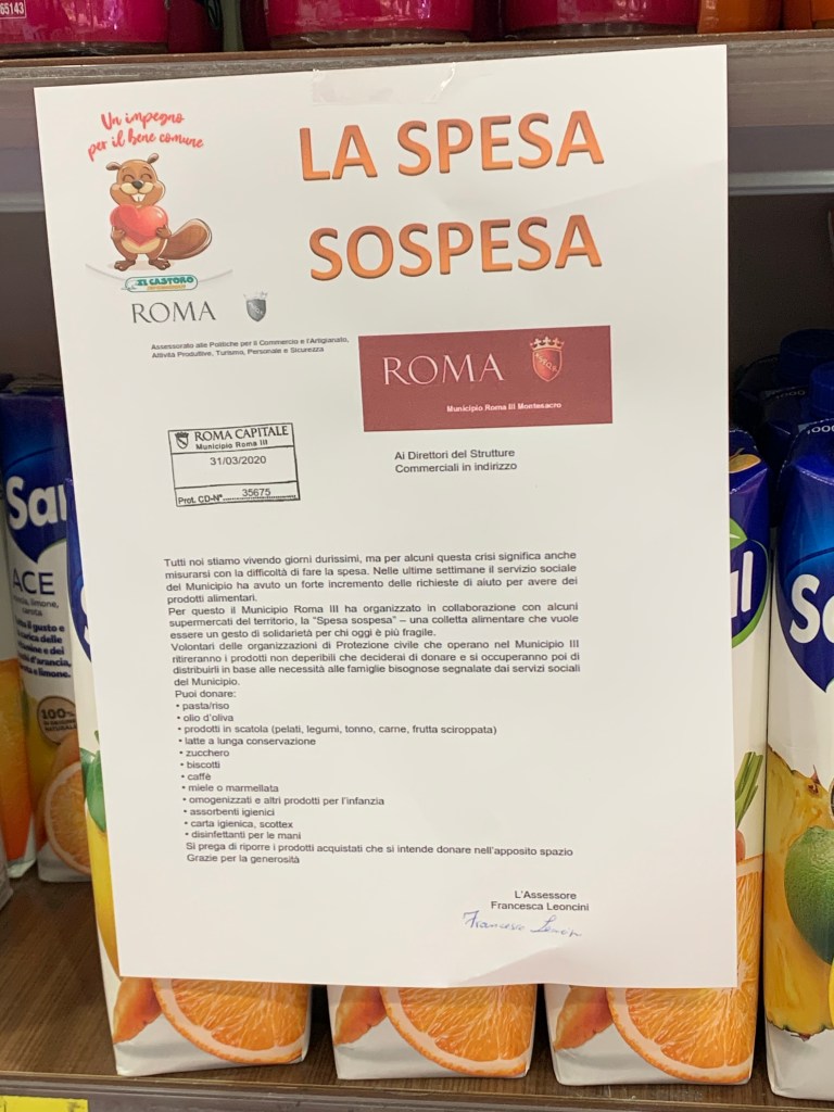 In questi giorni sta proseguendo la raccolta dei prodotti alimentari attraverso l’iniziativa delka “Spesa sosoesa” promossa del III Municipio ed istituita grazie alla direttiva di giunta a firma mia e dell’Assessore ai Servizi Sociali Maria Romano, per aiutare i nuclei familiari in difficoltà segnalati dai Servizi Sociali. Questi i supermercati che finora hanno aderito all’iniziativa e dove sarà possibile aiutare chi è in difficoltà lasciando una “spesa sospesa”.