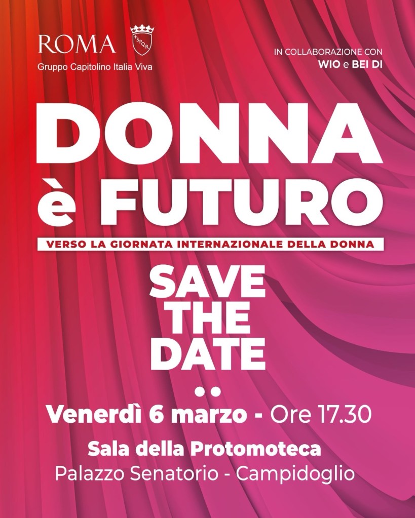 Venerdì 6 marzo dalle 17.30 nella Sala della Protomoteca in Campidoglio si svolgerà la III edizione di “Donna è Futuro”. Sarà un’occasione per celebrare il talento delle donne nell’impresa, nel lavoro, nell’arte e nello spettacolo e premiare le personalità che si sono distinte in questi campi.