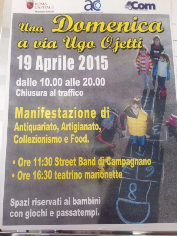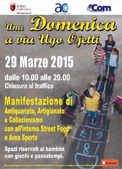 Domani domenica 20 marzo dalle 8 alle 20 si svolgerà “Una domenica a via Ojetti”, il consueto appuntamento organizzato dall’Associazione Commercianti e patrocinato dal III Municipio di Roma “Montesacro di chiusura della via al traffico per l’esposizione di stand di artigianato, collezionismo, antiquariato e gastronomia.