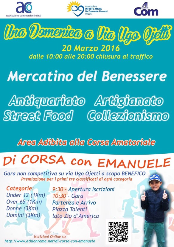 Inoltre sarà possibile partecipare alla corsa non competitiva “Di corsa con Emanuele”, organizzata a scopo benefico per la ONLUS intitolata ad Emanuele Ciccozzi, bambino nato e cresciuto nel quartiere Talenti.