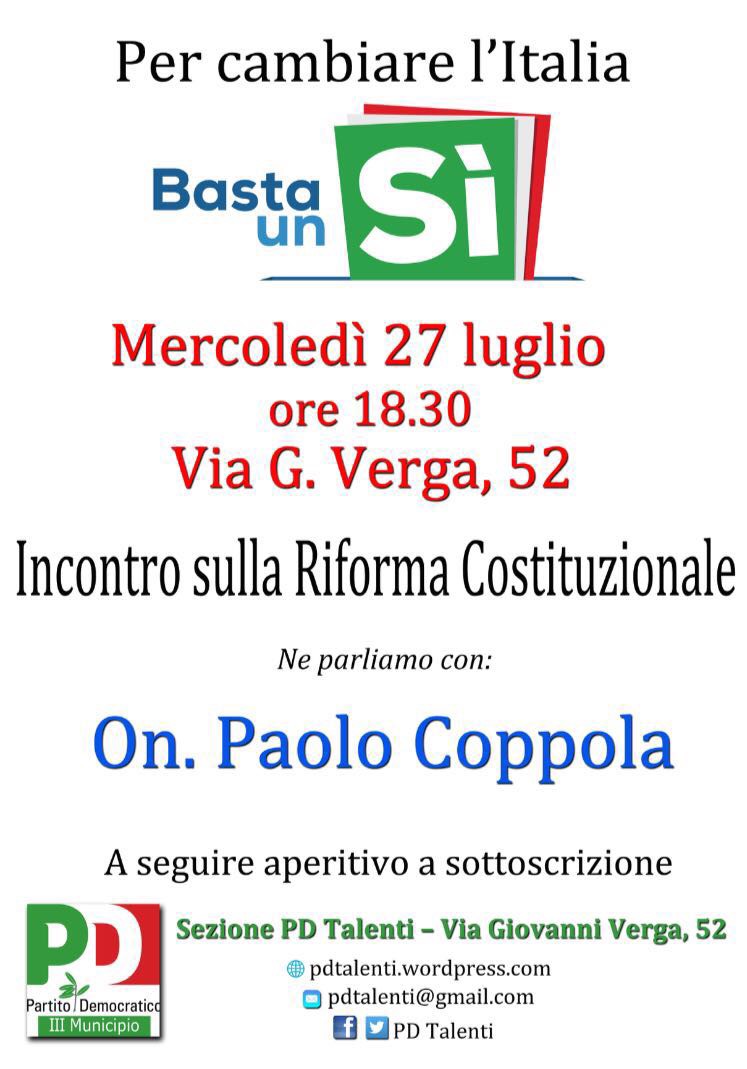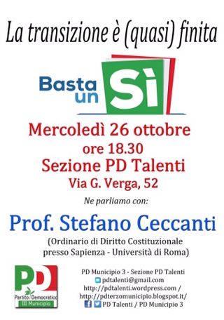 Taglio dei costi della politica, efficienza e stabilità del sistema politico, centralità del cittadino attraverso la valorizzazione dell’istituto referendario e delle leggi di iniziativa popolare sono i motivi principali per cui come cittadina impegnata in politica e nelle istituzioni come Consigliere del Municipio III di Roma vi invito a sostenere il SÌ nelle urne il 4 dicembre.