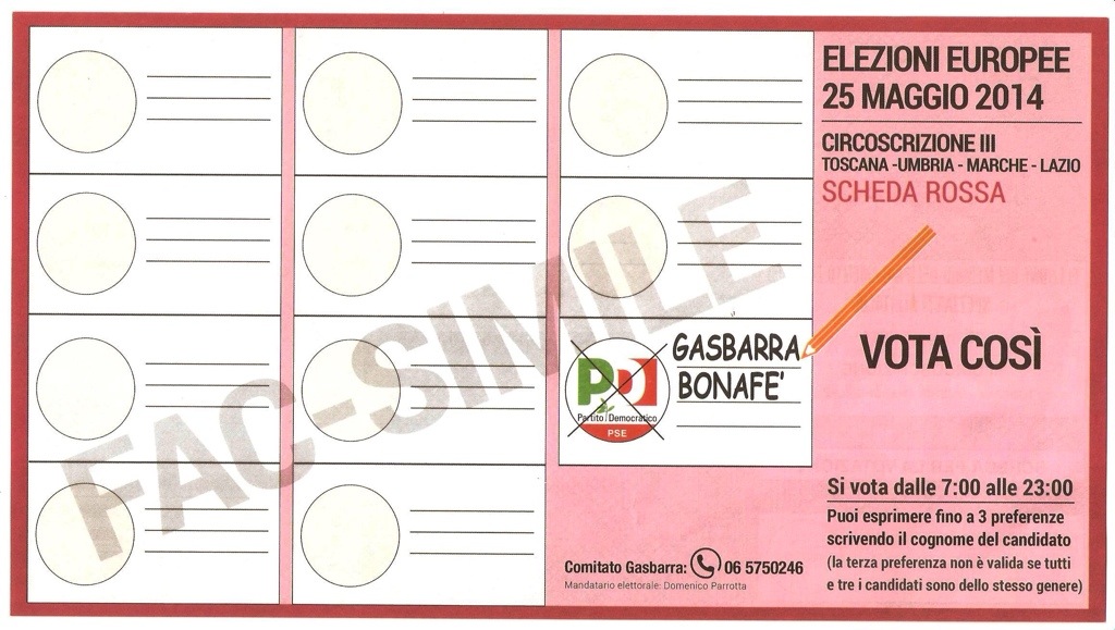 Si vota tracciando sulla scheda rossa un segno sul simbolo del PD e scrivendo accanto GASBARRA-BONAFÈ.
