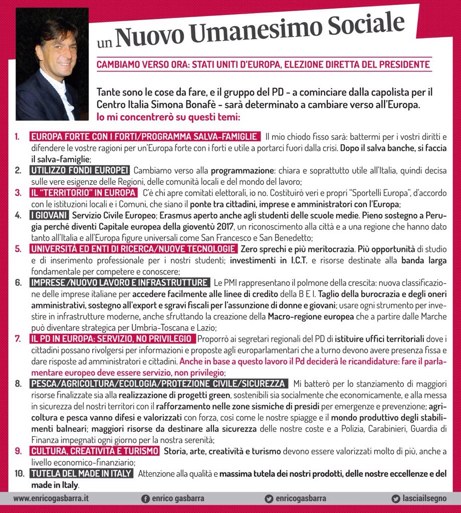 Per questo vi invito a sostenere il Partito Democratico ed i suoi candidati: in particolare Simona Bonafè la capolista del PD e Nicola Danti entrambi europarlamentari uscenti che si sono distinti in Europa per la loro competenza e la loro serietà.