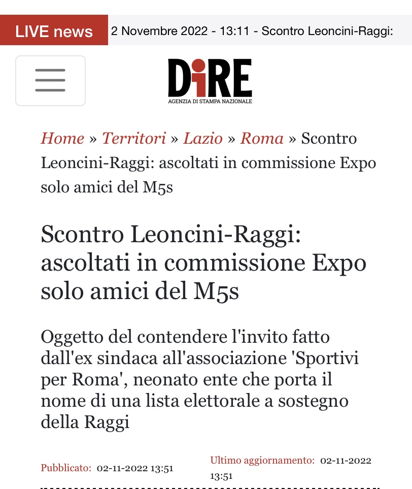 Abbiamo assistito con stupore, questa mattina, nel corso della commissione Expo 2030 presieduta dalla consigliera Raggi, all’audizione dell’associazione Sportivi per Roma diretta da Angelo Diario, ex consigliere comunale dei 5s durante la precedente consiliatura nonche’ ex presidente della commissione Sport, che e’ stato invitato a parlare di riqualificazione e rigenerazione di impianti sportivi e della possibile realizzazione di nuove aree