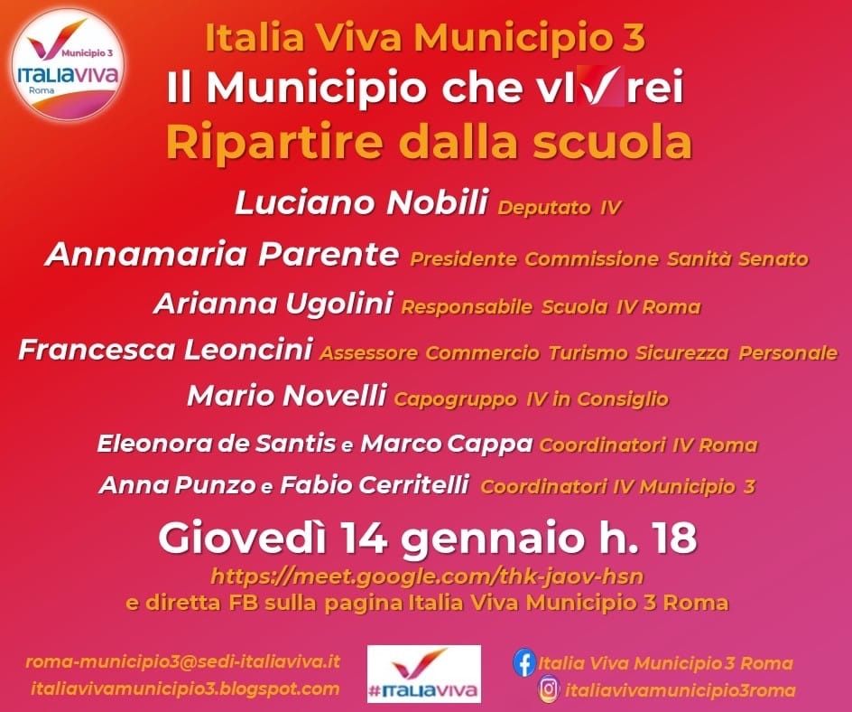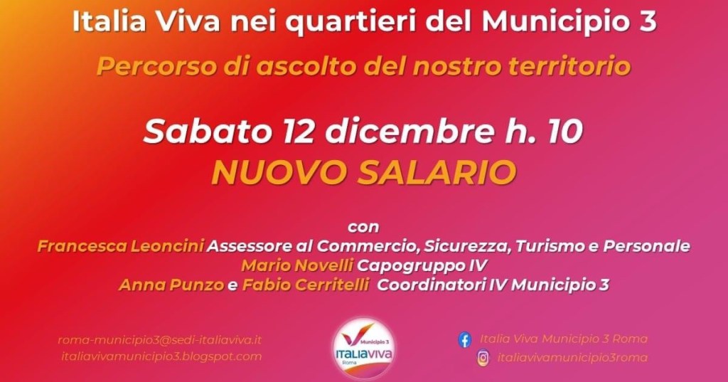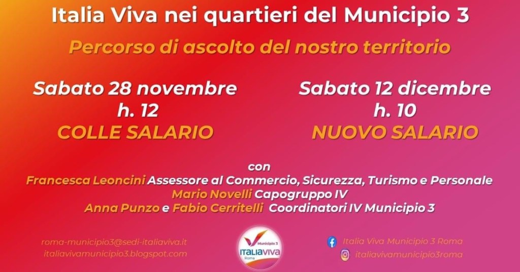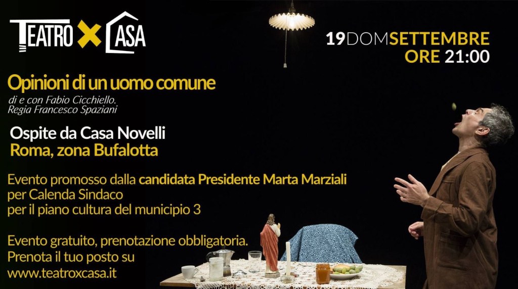 Sono lieta di invitarvi stasera alle ore 21 all’evento “Teatro per casa”: ospiti del guardino della casa (zona Bufalotta) di Mario Novelli, capogruppo uscente di Italia viva in Consiglio municipale, sarà possibile assistere alla rappresentazione “Opinioni di un uomo comune”. L’evento è gratuito ed è promosso dalla candidata Presidente del Terzo Municipio Marta Marziali della lista civica Calenda sindaco. Saremo presenti io e Valerio Casini, candidati all’assemblea capitolina. Scrivetemi in privato per le prenotazioni e indirizzo preciso.