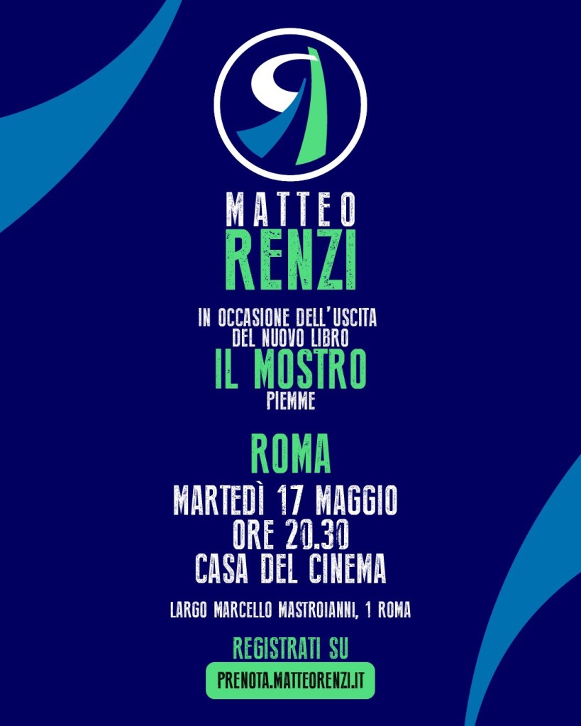 Martedì 17, in occasione dell’uscita del suo nuovo libro “Il Mostro”, ci vediamo alle 20.30 alla Casa del Cinema di Villa Borghese (in Largo Marcello Mastroianni, 1) con Matteo Renzi. Per tornare a discutere di politica e di futuro, insieme.