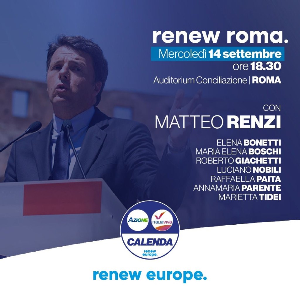 Domani Mercoledì 14 settembre saremo tutti insieme a Roma all’Auditorium Conciliazione con Matteo Renzi per sostenere il progetto dei riformisti e il proseguimento del governo Draghi. Ti aspettiamo, registrati qui: https://bit.ly/RenewRoma