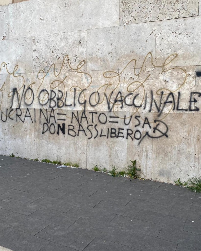 Roma, 31 mar – (Nova) – Nei giorni scorsi su alcuni muri in zona Montesacro sono apparsescritte che recitano “Ucraina uguale Nato” e “No all’obbligo vaccinale”. In una nota i consiglieri capitolini di Italia viva, Valerio Casini e Francesca Leoncini, nel definire le “scritte vergognose” spiegano che questo sono apparse “sui muri della scuola Don Bosco a piazza Monte Baldo e su quelli del mercato di viale Adriatico a Montesacro, insieme a graffiti e altre scritte che deturpano interamente il mercato di Viale Adriatico a Montesacro, completamente ristrutturato e inaugurato appena un anno fa. Su segnalazione della consigliera Marta Marziali consigliera di Italia viva in Municipio III, ci siamo subito attivati chiedendo all’ufficio del nucleo Ambiente e decoro e all’ufficio coordinamento Decoro urbano di Roma Capitale un intervento immediato di pulizia per ripristinare il decoro delle aree”, concludono Casini e Leoncini. (Com).