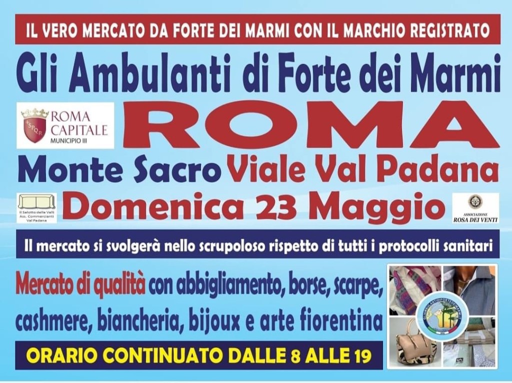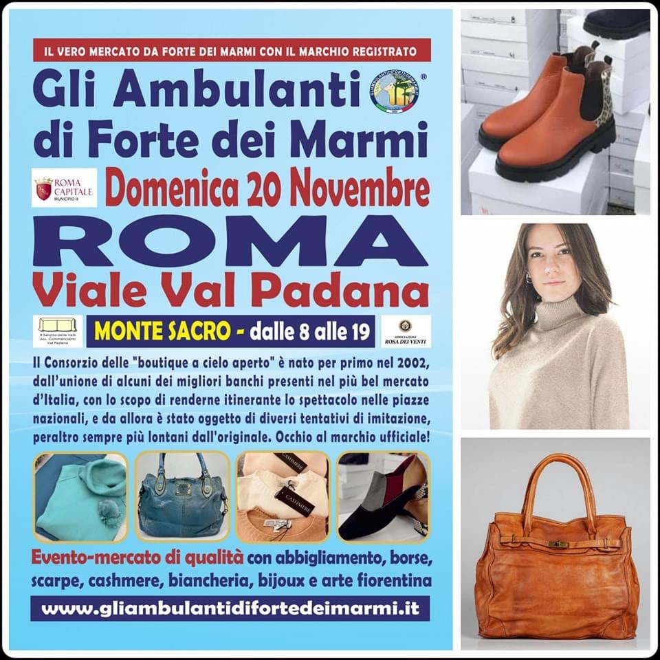 Domenica 20 novembre dalle 8 alle 19 si svolgerà la mostra mercato degli ambulanti di Forte dei Marmi nei giardini di Val Padana in Terzo Municipio con stand di abbigliamento e artigianato caratteristico.