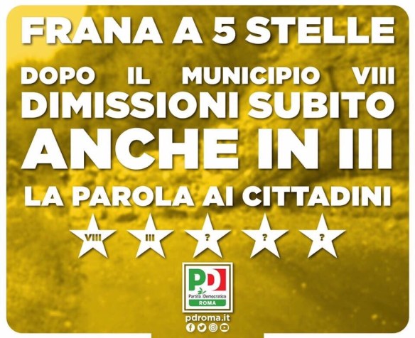 GRUPPO PD, MUNICIPIO III: MAGGIORANZA  5S SOSPENDE CONSIGLIO PER NON DISCUTERE MOZIONE DI SFIDUCIA AD ASSESSORE SARTIANO