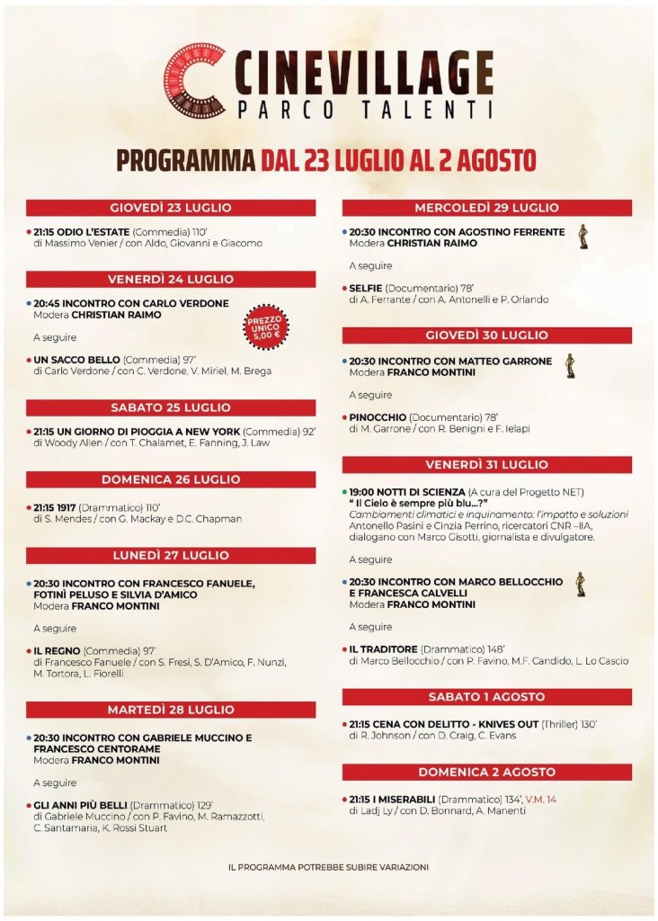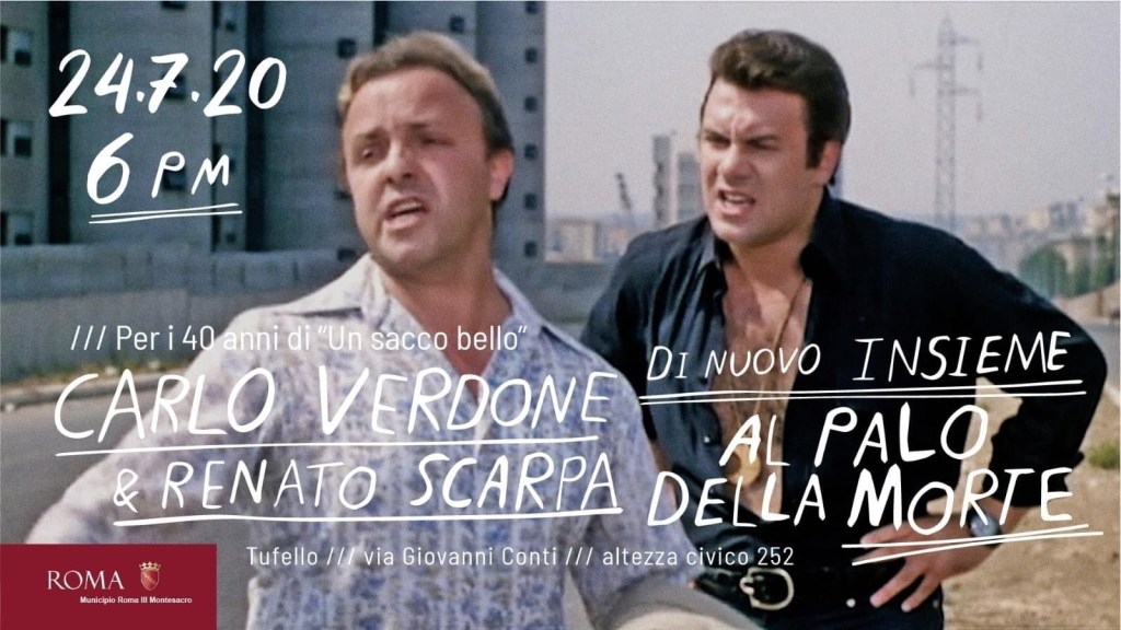 Ripartiamo dal Cinema all’aperto! Stasera alle 18, in occasione dei quarant’anni del film “Un sacco bello”, ricorderemo insieme a Carlo Verdone la scena cult del film con l’apposizione di una targa nel luogo dove sorgeva il “palo della morte” a Vigne Nuove. Poi nell’arena all’aperto del “Cine Village “ nel Parco Talenti si terrà la proiezione del film preceduta da un incontro col il celebre attore e regista romano. #cinevillage #verdone #unsaccobello#municipiotre