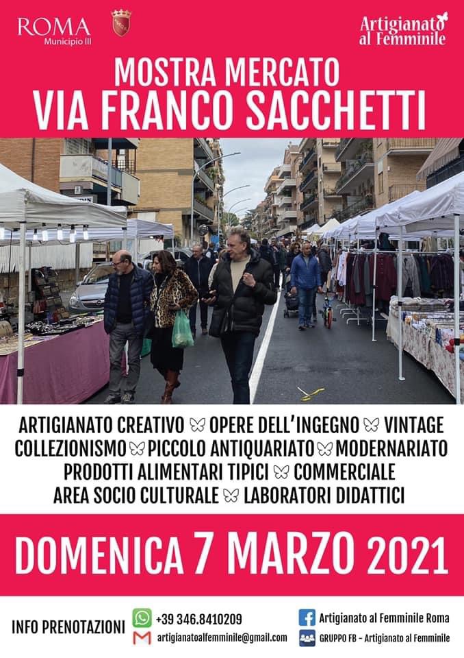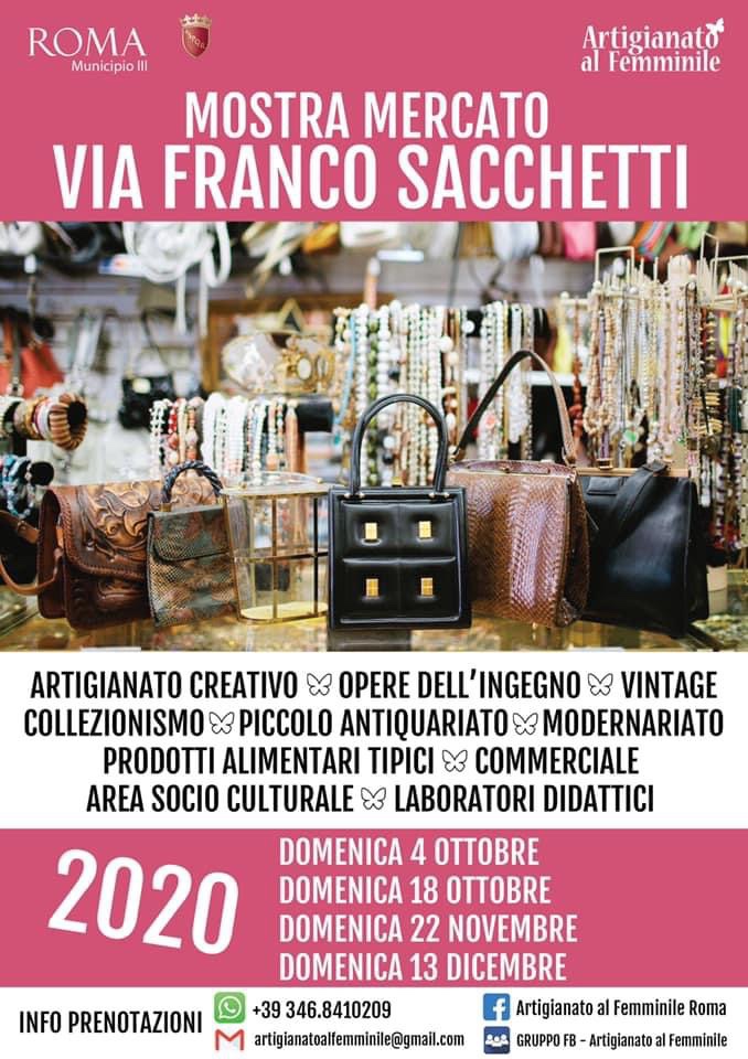 Riprendono le mostre mercato: dopo via Conca d’Oro, oggi domenica 4 ottobre, si potrà passeggiare fino alle 20 per via Franco Sacchetti pedonalizzata e chiusa al traffico per la mostra mercato con stand di artigianato ed enogastronomia.